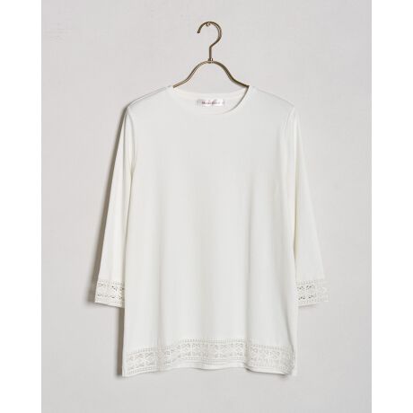 1枚でもインナーでも活躍し、裾レースがさりげない華やかさを添える7分袖デザインです。