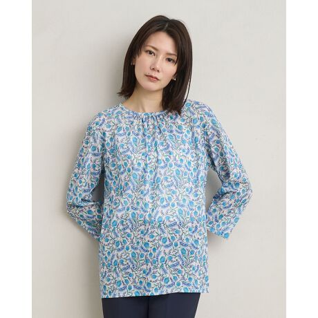 胸元のギャザーが立体感と縦ラインを生み、すっきりとした印象に。