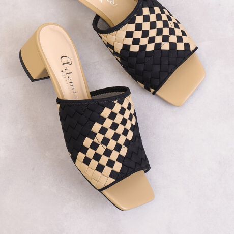 【26春夏新作】メッシュ素材 チャンキーヒールミュールサンダル