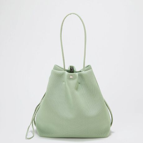 サイドのコードをきゅっと引けば、巾着型のフォルムにチェンジ。