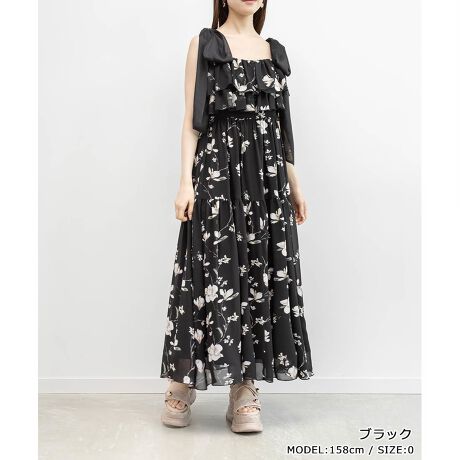 <26春夏新作>シアーリボンショルダーティアードワンピース