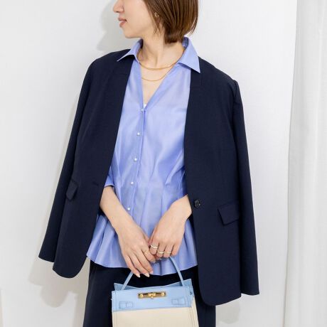 ・毎年好評のツイルストレッチ素材を使用した、夏まで羽織れるシングルVネックジャケット