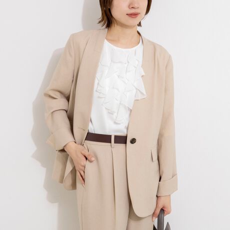 ・同素材タイトスカート、セミワイドパンツとセットアップでの着用もおすすめ