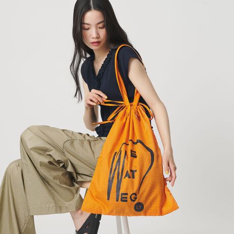 オランダで見つけた古い本の表紙をモチーフにした<LY>のサックトートバッグ。
