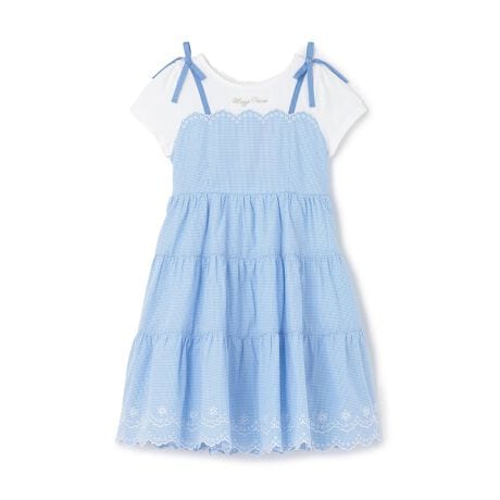 【人気商品再入荷】【直営店で取り扱い無し】カットワークギンガム ドッキングワンピース