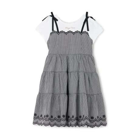 【人気商品再入荷】【直営店で取り扱い無し】カットワークギンガム ドッキングワンピース