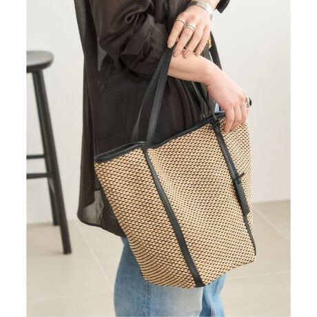 ナチュラルな素材感に、洗練されたブラックラインを効かせたトートバッグ。