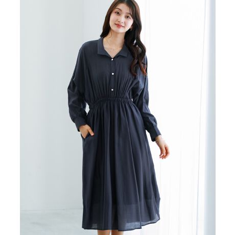 シルキーローン生地を使用したシャツワンピース。