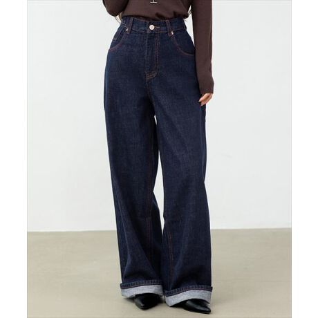 ステッチワイドデニムパンツ