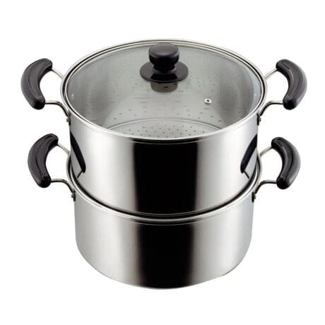 ●丈夫なステンレス製の2段タイプの蒸し器です。