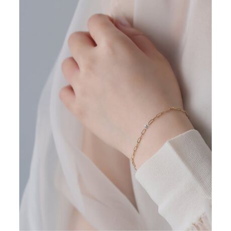 直線的で抜け感のあるチェーンが、手元の動きに合わせてダイヤモンドのクリアな輝きを引き立てます。
