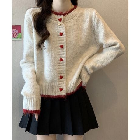 ハートボタンニットカーディガン長袖韓国風