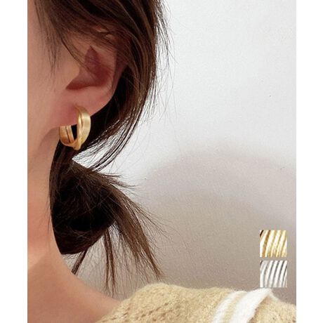 ミニマルなラインデザインが魅力のメタルフープピアス。