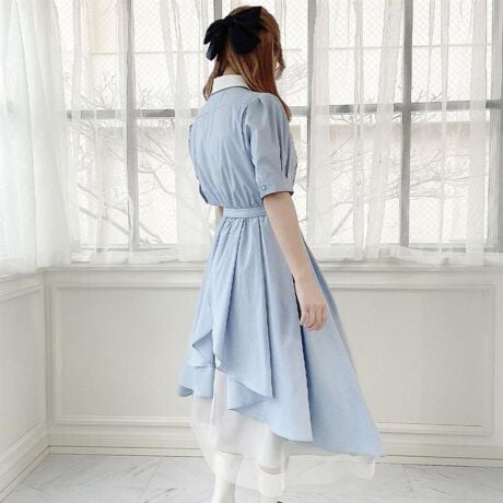 バックラッフルの後ろ姿が特別感たっぷりのストライプシャツワンピース?