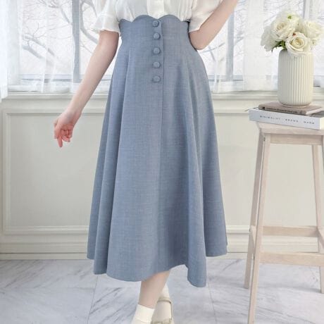 【サイズ展開】ハイウエストスカラップフレアースカート 洗える