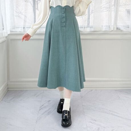 【サイズ展開】ハイウエストスカラップフレアースカート 洗える