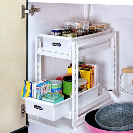 ●シンク下を使いやすくし、スッキリと収納できる2段ストッカーです。