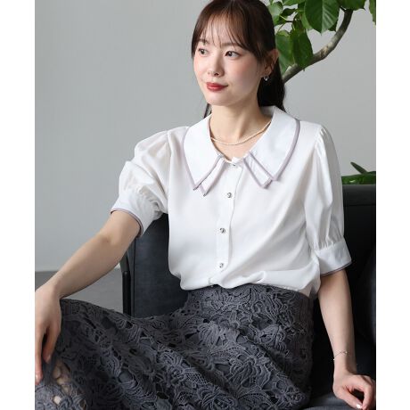 トレンド感あふれるダブル襟にバイカラーのパイピングがきちんと感をプラスするきれいめブラウス。