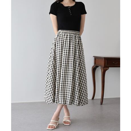 春夏らしい爽やかなチェック柄が魅力のバルーンスカート。