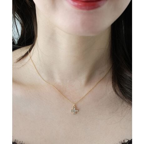 クロスモチーフに輝くビジューをあしらったミニマルなネックレス。