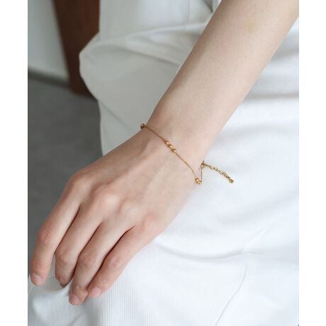 極細のチェーンに小さなボールパーツを等間隔にあしらった、ミニマルかつ遊び心のあるデザインブレスレット。