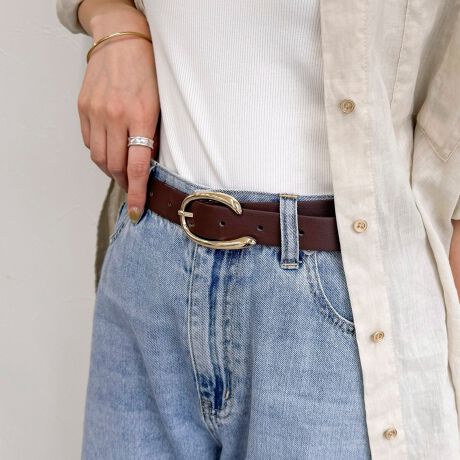 ・目を惹くCバックルがウエスト周りのアクセントになるベルトです
