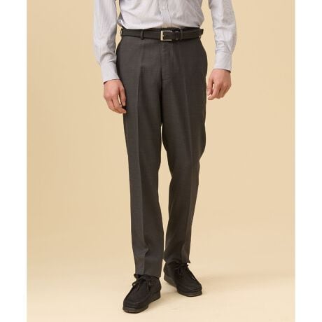 ■素材 特殊な紡績手法で作られた極細なウール×ポリエステル糸を使用。軽くて通気性がよく、肌触りもさらっとした快適性の高い生地を採用しました。暑い夏のビジネスシーンにおいても軽やかでエレガントなビジネスジェントルマンを演出するサポートパンツとして夏にうれしい機能が充実したアイテムです。