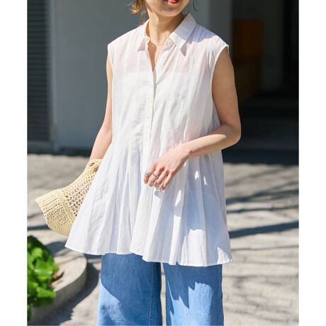 涼しげなシアーボイル素材を使用した、軽やかなノースリーブブラウス。