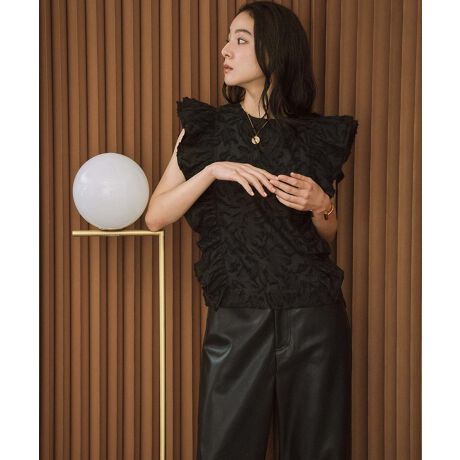 女性らしいフリルディティールをジャガード素材に落とし込んだデザイン性抜群のブラウスです。