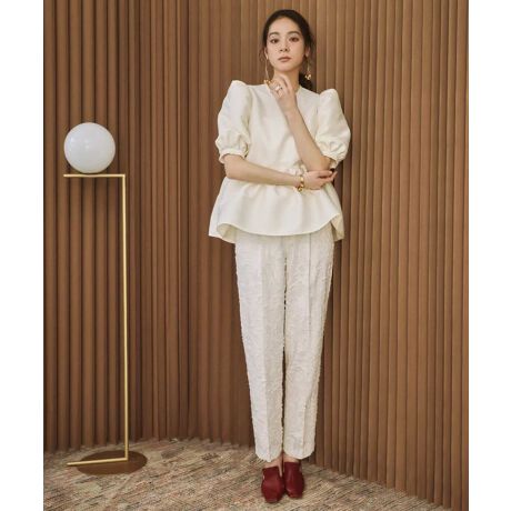 華やかな印象のシンプルスリムなジャガードパンツです。