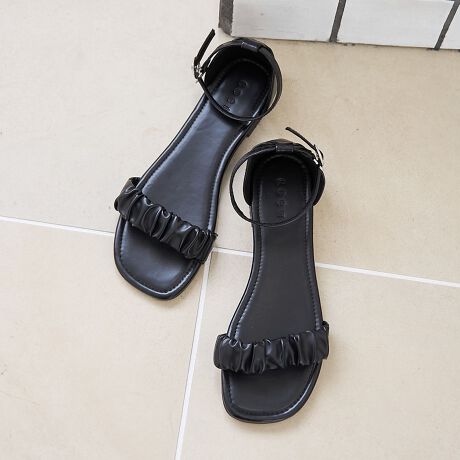 〇ギャザーデザイン×華奢ストラップのミニマルサンダル