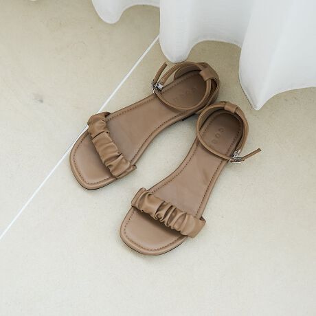 〇ギャザーデザイン×華奢ストラップのミニマルサンダル