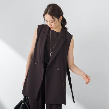 テーラードカラーのきちんと感がありながらサイドのベルトデザインがこなれ感を演出してくれます。