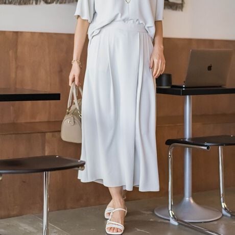 スカートのような上品な見た目と、パンツならではの動きやすさを兼ね備えた一着。