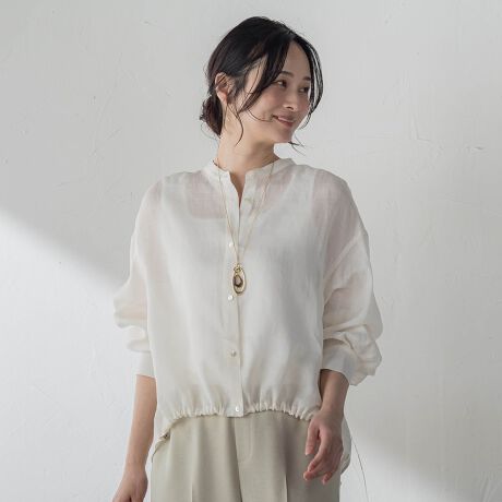 透けすぎない大人のシアーシャツとしておすすめのアイテムです。