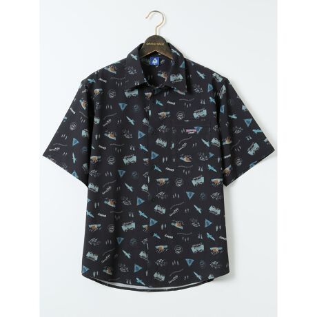 接触冷感 メッシュ 総柄 半袖 シャツ(セットアップ可能)