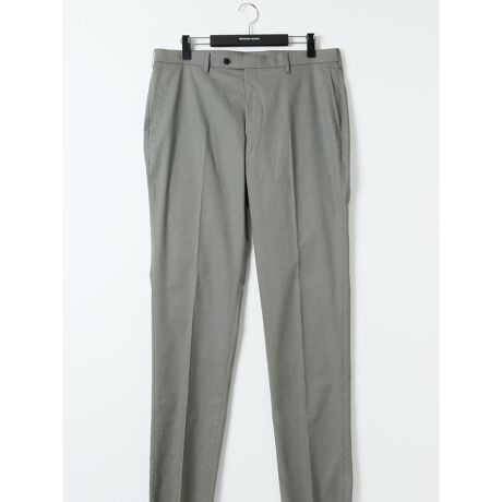 キチンと見えするルックスと楽ちんな穿き心地を兼ね備えた、ノータックのテーパードパンツです。ウエストストレッチで着脱もスムーズ、着席時も窮屈感がありません。センタープレス加工、フロントファスナー&ボタン、ベルト通し付き、前後ポケット付き、裾部分は未加工です。