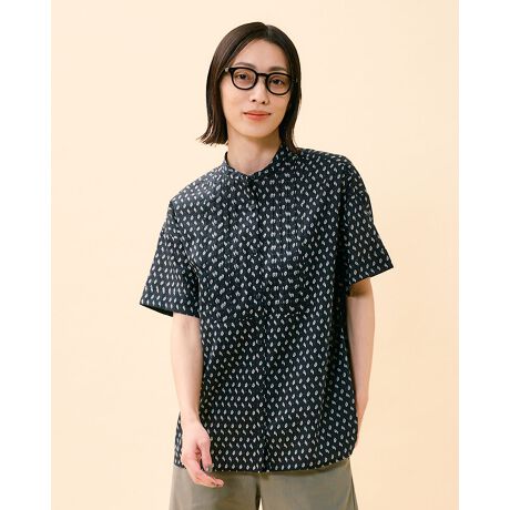 さりげない柄使いで上品に仕上げたプリントシャツ。
