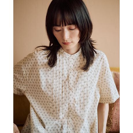 さりげない柄使いで上品に仕上げたプリントシャツ。