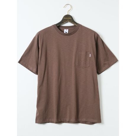 コットンにポリエステルを混紡したスラブ天竺素材を使用しています。スラブ特有の節やネップ、ナチュラルな風合いが特徴です。乾きやすく快適な着心地で、触れるとひんやりと気持ちいい接触冷感生地です。