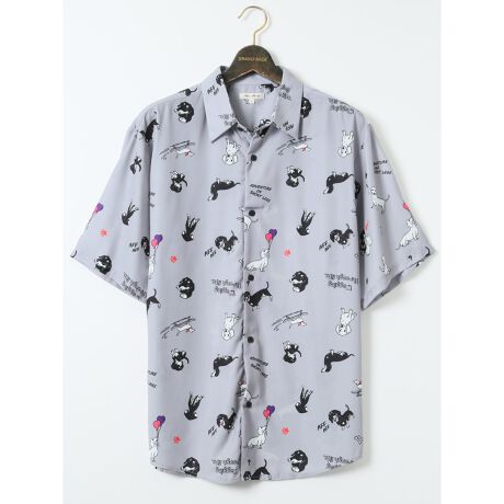 夏コーデの主役アイテムにぴったりな、レギュラーカラーの半袖Tシャツです。可愛い犬のイラストが散りばめられた総柄プリントが存在感抜群。チノパンツと合わせて爽やかに、デニムやカーゴパンツと合わせてカジュアルに、ショートパンツと合わせてスポーティーに、幅広いスタイルに馴染んでくれます。