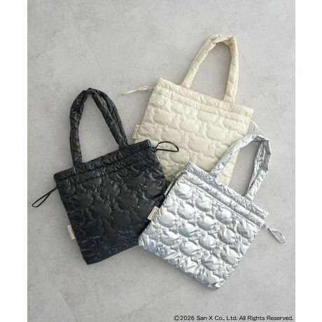 リラックマのシルエットをあしらったキルティング素材の、earth music&ecologyでしか手に入らない特別なコラボトートバッグ。