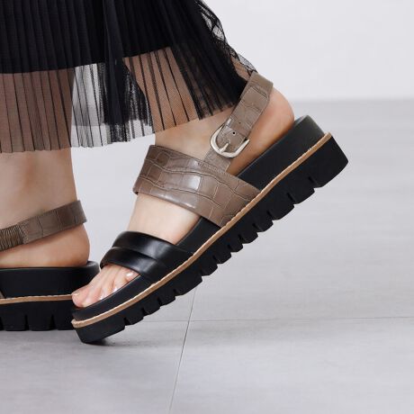 ふっくらとしたパデットベルトとクロコ型押しレザーをミックスした、大人カジュアルなスポーツサンダル。甲のベルトが足をしっかりとホールドし、中底のフットベッドが足裏にフィットすることで、毎日でも履きたくなる快適な履き心地を叶えます。