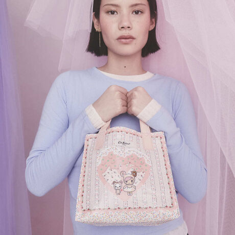 Cath Kidstonで人気のブックバッグの使いやすいスモールサイズ。特徴的なシルエットはそのままに、より小さく便利なサイズです。コーティングされた光沢のあるコットンは拭くことができ、お手入れも簡単です。アーティストのシモーネ・レーニョによるカルト的人気のキャラクター、ドナテーラ(Donutella)とその仲間たちが、チャーミングなハートのモチーフの中に描かれ、Cath Kidstonのキャンディのようなお花たちと見事に融合。大胆で期待を裏切らない、エキサイティングなデザインに仕上がっています。