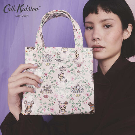 Cath Kidstonで人気のブックバッグの使いやすいスモールサイズ。特徴的なシルエットはそのままに、より小さく便利なサイズです。コーティングされた光沢のあるコットンは拭くことができ、お手入れも簡単です。紙で出来た着せ替え人形の服、ペーパードレスをイメージしたデザイン。繊細な格子状の花々の間に、tokidokiのキャラクターであるDonutella、Chocotella、Dolceたちが、まるで着せ替え人形のように、Cath Kidstonの可愛らしいミニチュアドレスと一緒に並んでいます。よりいっそう遊び心のある魅力を添えています。