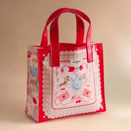 Cath Kidstonで人気のブックバッグの使いやすいスモールサイズ。特徴的なシルエットはそのままに、より小さく便利なサイズです。コーティングされた光沢のあるコットンは拭くことができ、お手入れも簡単です。レースやラブレターのコレクションからインスピレーションを得たこのデザインには、キューピッドの矢、愛の手紙、花束、そしてトランプなど、遊び心あふれる「宝物」たちが贅沢に描かれています。どこか懐かしさを感じさせるモチーフが、温もりと愛に満ちた世界観を演出します。