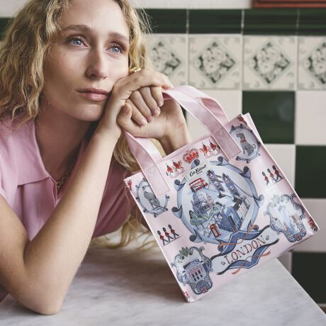 Cath Kidstonで人気のブックバッグの使いやすいスモールサイズ。特徴的なシルエットはそのままに、より小さく便利なサイズです。コーティングされた光沢のあるコットンは拭くことができ、お手入れも簡単です。タワーブリッジや赤い2階建てバスといったロンドンの象徴的な景色を、ブランドの代名詞である繊細な花々と共に、美しいブルーのトーンで描き出しました。Cath Kidstonを代表するキャラクターたちも顔を覗かせ、街の魅力を余すところなく表現しています。