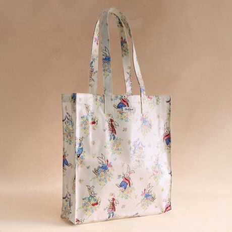 ラージブックバッグはCath Kidstonで最も人気のあるアイテムのひとつ。コーティングされたコットンの軽量ながらも耐久性のる素材で、使いやすいサイズのトートバッグです。内ポケット付き。ドレスを纏った愛らしいウサギがアーカイブから復活した花々に囲まれて思い思いに佇んでいます。日々の気分を明るくしてくれるような、かわいらしいプリントです。