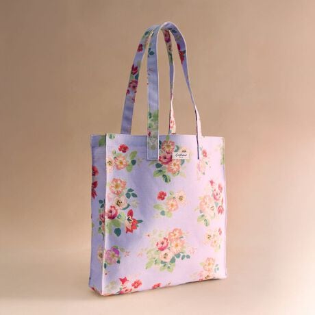 ラージブックバッグはCath Kidstonで最も人気のあるアイテムのひとつ。コーティングされたコットンの軽量ながらも耐久性のる素材で、使いやすいサイズのトートバッグです。内ポケット付き。このデザインはCath Kidstonの伝統的アーカイブからインスピレーションを得たもの。柔らかなライラックカラーをベースに、コーラル、クリーム、ピンクといった鮮やかな花々が咲き誇り、新時代を感じさせるフレッシュでモダンな表情に仕上げました。どこか懐かしく華やかな、色褪せない魅力を感じさせるプリントです。
