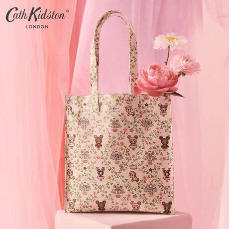 ラージブックバッグはCath Kidstonで最も人気のあるアイテムのひとつ。コーティングされたコットンの軽量ながらも耐久性のる素材で、使いやすいサイズのトートバッグです。内ポケット付き。紙で出来た着せ替え人形の服、ペーパードレスをイメージしたデザイン。繊細な格子状の花々の間に、tokidokiのキャラクターであるDonutella、Chocotella、Dolceたちが、まるで着せ替え人形のように、Cath Kidstonの可愛らしいミニチュアドレスと一緒に並んでいます。よりいっそう遊び心のある魅力を添えています。